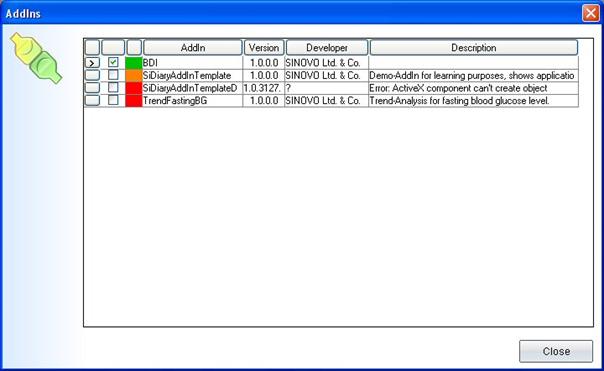 For our internal quality management we will certify the AddIns. The certification is kind of a testing seal. You can see the status of an AddIn at the color in front of the AddIn: