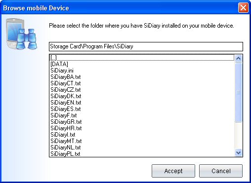 and then filled with the content from SiDiary on your PC.