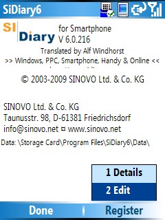 If you have purchased the subscription version of SiDiary you can register all program versions (PC, Pocket PC, Windows Smartphone, Android and Java-based cell phone) to use SiDiary for 12 months without adware restrictions and commercial popups.